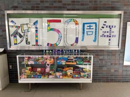 玄関の掲示物も「創立150周年記念」バージョンとなりました。