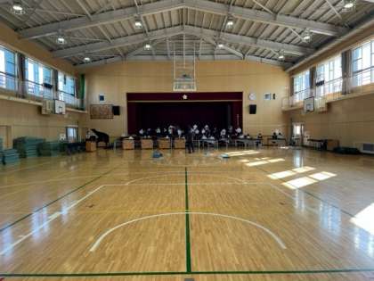 講堂に楽器を運び入れての練習も始まりました。