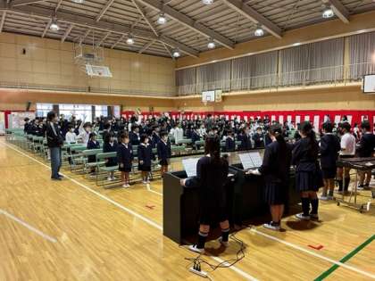 本日2時間目の、「創立150周年記念児童集会」練習の様子です。