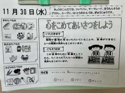 11月30日(水)の給食
