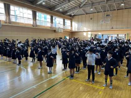 健康給食環境委員会のみなさんが考えた「玉出ストレッチ体操」です。みんなでしっかりと取り組みましょう。