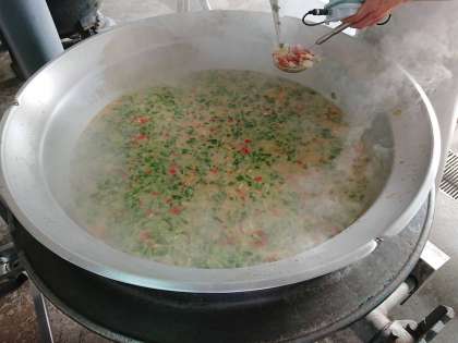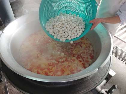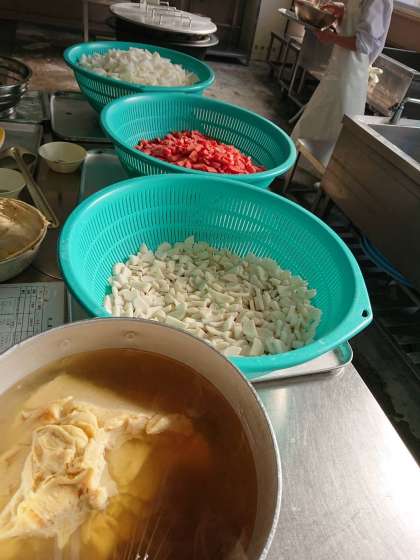 今日の給食の「雑煮」は、鰹節で出汁をとっていて、白みそを多く使用した関西風の雑煮です。