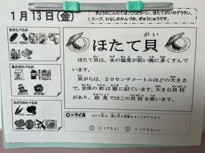 今日は子どもたちの大好きな洋食メニューです。ホタテ貝のグラタン、スープ、和なしの缶詰めとも、とても美味しいです。
