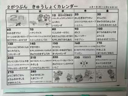 2月分の給食カレンダーも、あわせて掲示しています。