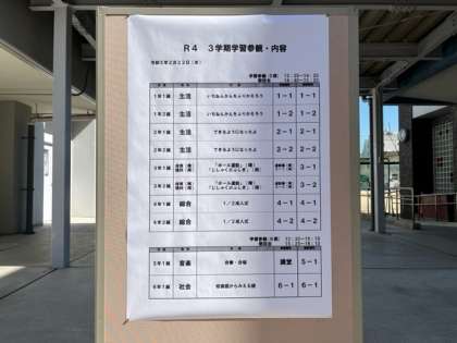 1〜4年生の参観が13:35〜14:20、5・6年生の参観が14:30〜15:15です。