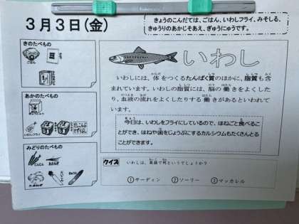 本日の献立は、いわしフライ、きゅうりの赤じそあえ、ごはん、みそ汁、牛乳です。