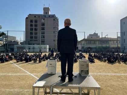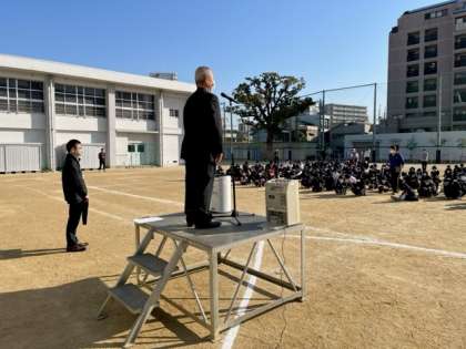 西成区長様は、8時前から正門に立ち「朝の挨拶運動」にも参加してくださいました。