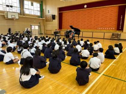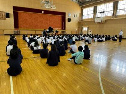 とても素晴らしい演奏に、子どもたちは聞き入り、拍手喝さいでした。お話も分かりやすく、とてもいいキャリア教育にもなりました。