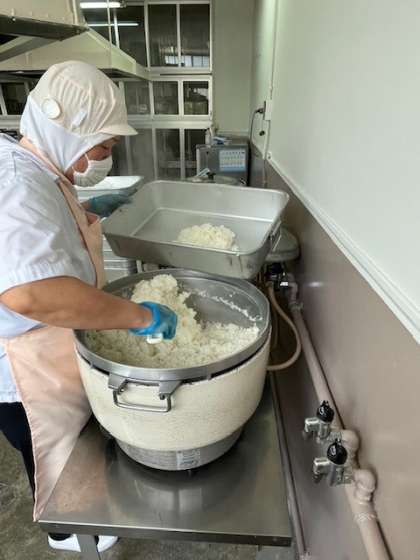 また、玉出小学校では、ごはんを委託するのではなく、校内の給食室で炊いていますので、いつも温かいホカホカのごはんです。