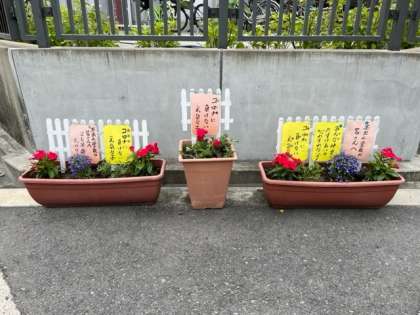 今朝、学校に出勤すると、本校北西角のお花を、地域の方が植え替えてくださっていました。