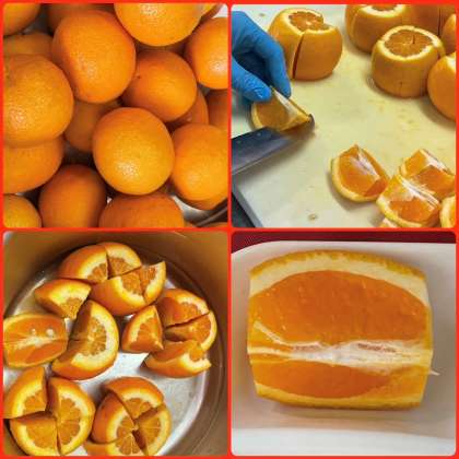 食後のオレンジが、甘くてとても美味しかったです。ご覧のように、1個1個ていねいに切ってくださっています。