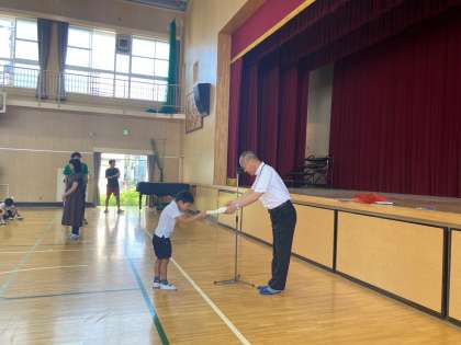 次に、昨日行われた「大阪府民スポーツ大会相撲競技 優勝」の賞状と金メダルの伝達を行います。