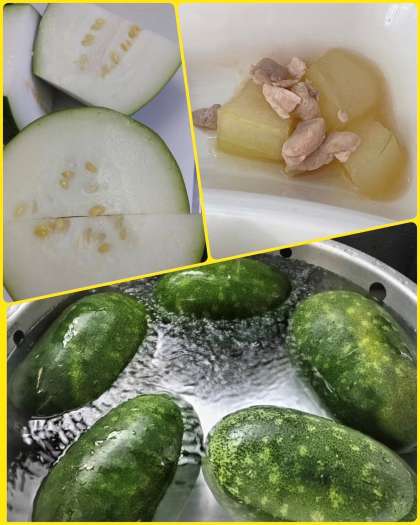 「冬瓜の煮物」は、鶏肉、冬瓜を、出汁、生姜汁、みりん、塩、薄口醤油で味付けし、でん粉でとろみをつけています。