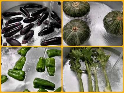 「夏野菜のカレーライス」には、なす、かぼちゃ、ピーマン、セロリなどの旬の野菜がたくさん入っていました。