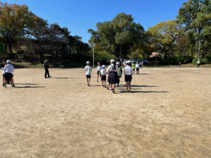 隠れている6年生を、5年生がリーダーになって、班活動で探しに行きます。