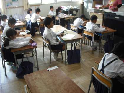 1時間目に、全校道徳で「わたしのいもうと」の読み聞かせがありました。松谷みよ子さんの作品で「この子は わたしの いもうと むこうをむいたまま ふりむいてくれないのです いもうとのはなし きいてください」で始まりました。「いじめ」を考える絵本です。どんなお話か聞いてみてください。松谷さんは、この小さなお話が何かを語り合うきっかけになればと願っています。と結ばれています。子どもたちは、聞いた後で教室で、自分の考えを持ちました。