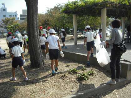 20日、第3校時、玉出公園、玉出西公園、玉出南公園に清掃に行きました。縦割り班で一生懸命にしました。きれいになると気持ちがいいです。