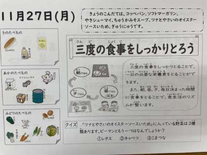 いよいよ寒くなってきました。しっかり栄養バランスの良い食事を食べて体力をつけましょう。