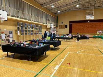 「作品展」も見学してくれました。小学生の皆さんの上手な作品に見入っていました。