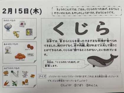 「クジラの竜田揚げ」は、今年度の給食に初登場の献立です。とても美味しいです。