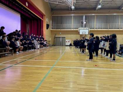 卒業生の入場、開会のあいさつに続いて、在校生から卒業生への、お祝いの出し物です。