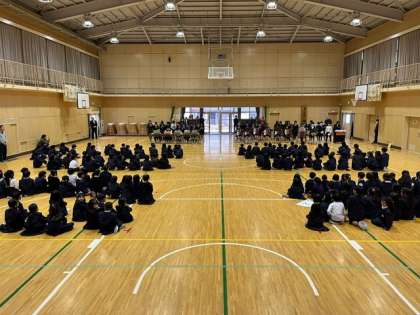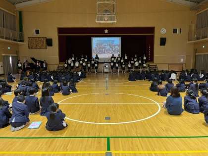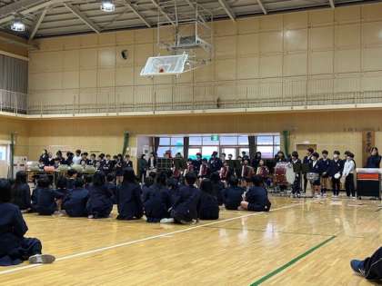 写真は、5年生の様子、そして、6年生から在校生へのお礼の出し物の様子です。