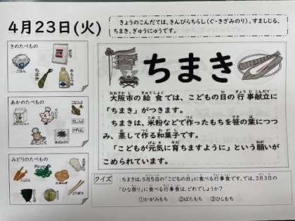 児童の成長を願い、子どもの日の行事献立として毎年給食に出されています。