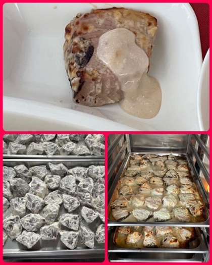 「かつおのガーリックマリネ焼き」は、にんにく、塩、しょうゆ、白こしょう、ノンエッグドレッシングで下味をつけたかつおを焼き物機で焼いたものです。