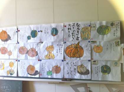 辰巳さんから話を聞き、ずっと学習を進めてきたこつまなんきん。一生懸命に世話をし、できたものを収穫し、絵で表現しました。
