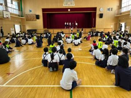 今朝は、臨時で「児童集会」を行いました。