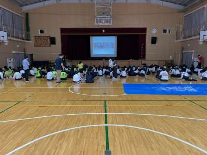 2時間目は高学年、3時間目は低学年のみなさんが、西成区役所の方々による「防災講座」を受講しました。