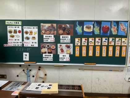 今回も、南津守小学校栄養教諭の奥埜先生に来ていただき、「カムカム大発見!」と題して、嚙むことの大切さを詳しく教えていただきました。