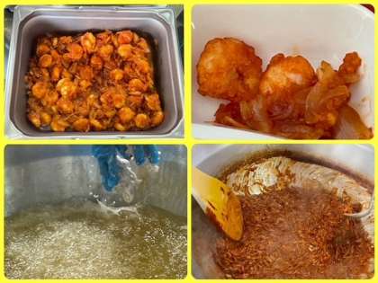 「えびのチリソース」は、塩、コショー、料理酒で、下味をつけたえびに、でん粉をまぶし、菜種油で揚げています。