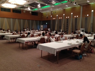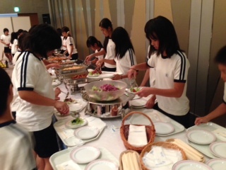 元気に二日目を迎えたようです。昨日の夕食の様子です。好きなものがいっぱい、おかわりでお腹一杯に、デザートにフルーツ、ケーキ、アイスクリームもありました。