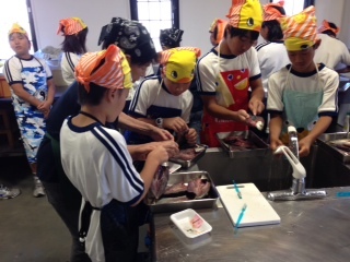 アジをさばいて、干物を作っています。