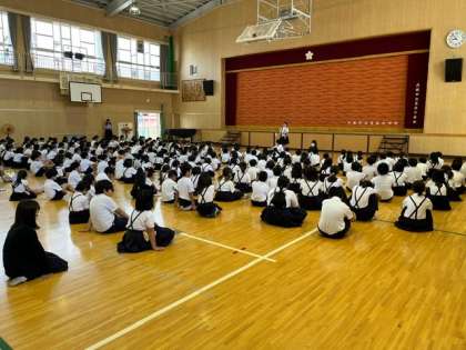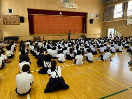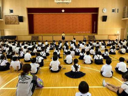このあと、児童代表のことば(5年生)、夏休みの生活についてのお話し(生活指導部長)です。