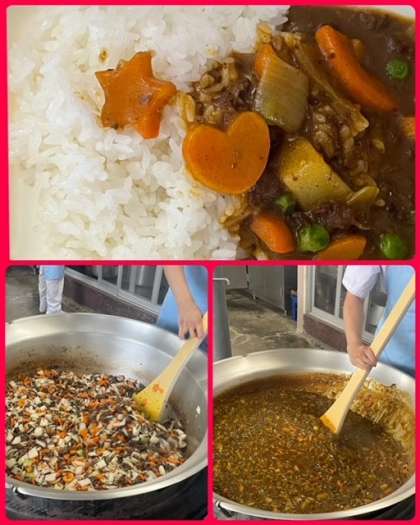 今日のビーフカレーライスには、調理員さんが、ご覧のようなラッキーにんじんを入れてくださっています。