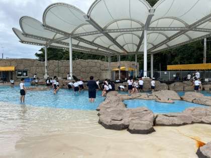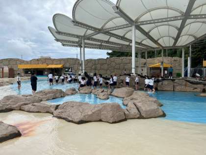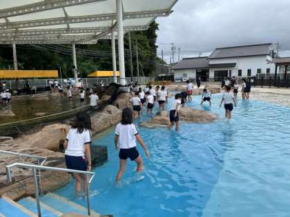 続いて全員で、人工磯遊び体験、足湯体験です。