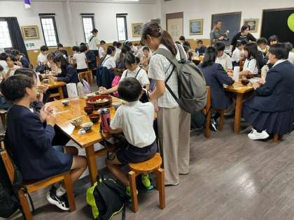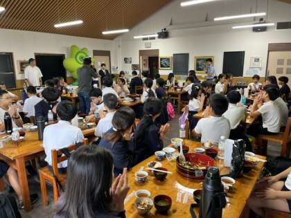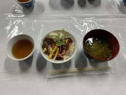 お昼ご飯は、自分たちで作った手こね寿司と、あおさのみそ汁です。