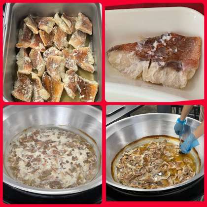 「赤魚」は、魚の名前ではなく、皮の色が赤い魚のことで、代表的な魚は、「アコウダイ」や「アラスカメヌケ」です。深い海に住んでいて、大きさは50cmぐらいのものが多いです。加熱するとふっくらした食感になり、味のクセが少ないので、調理しやすい魚です。