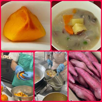 「鶏肉とさつまいものシチュー」には、ご覧のような新鮮な旬のさつまいもが使われています。とても美味しいです。