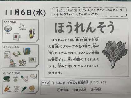 11月6日(水)の給食