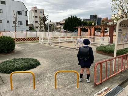 玉出中公園が工事中のため、その近辺の集団登校班が、一部通学路を変えています。