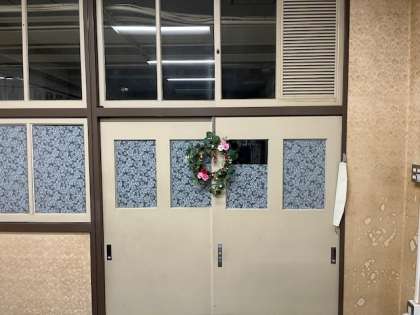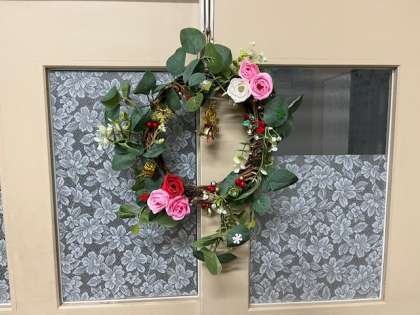 今月は、ご覧のような素敵な「クリスマスリース」をいただきました。