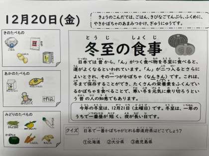 昔から、「冬至」にかぼちゃを食べると、風邪をひかずに健康に暮らせるといわれています。