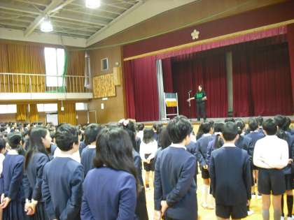 元気に講堂に集まることができました。大きな事故なく、大きなけがもなくみんなが集まることは当たり前だけれども、それがうれしいなと思いました。校長先生からは、3学期はまとめと準備の時期であるという話と星野富弘さんの詩を紹介していただき、みんなで読みました。6年生の3学期を迎えてでは、今までの6年生としてやり残していることをきちんとやっていきますという決意をみんなに伝えてくれました。さあ、それぞれが新しいスタートです。一人一人が自分の力で玉出小学校を作っていきましょう。先生方の黒板メッセージもとても温かく子どもたちをむかえてくれました。