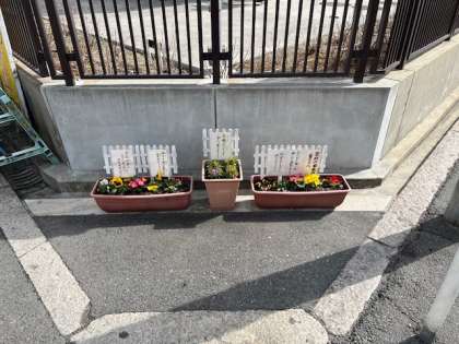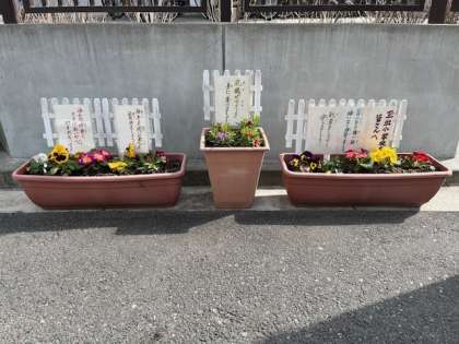 地域の方が、学校の北西角に、いつも綺麗なお花を植えてくださっています。