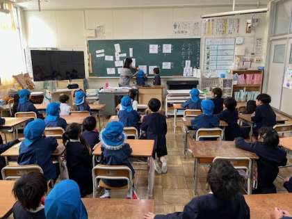 本日2時間目に、玉出幼稚園の年長さんが、本校1年生との交流に来てくれました。