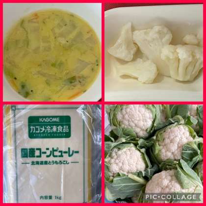 「コーンスープ」は、白菜、コーン、にんじん、いろどりにパセリを使用した、ご覧のコーン(ペースト)の甘みを生かしたスープです。