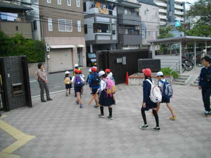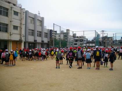 現地では、ラリークイズをしながらチェックポイントをともだち班でまわり高得点を目指す活動です。午後からは、1〜3年生・4〜6年生ごとに分かれて行動し学校へもどってきます。到着予定時間は、3時〜3時半です。